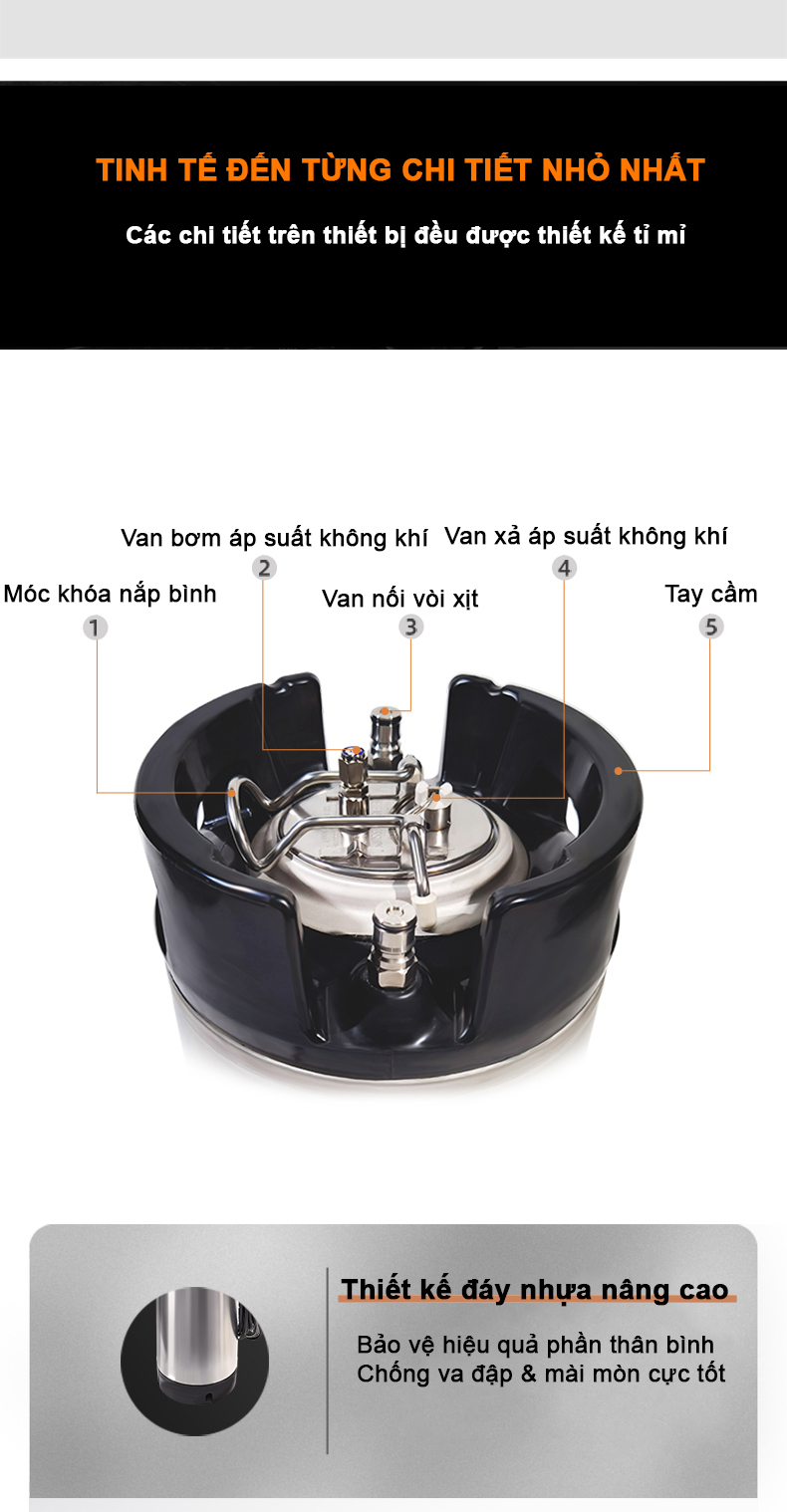 - Lõi bình bằng hợp kim chống rỉ, bảo quản dung dịch trong thời gian dài