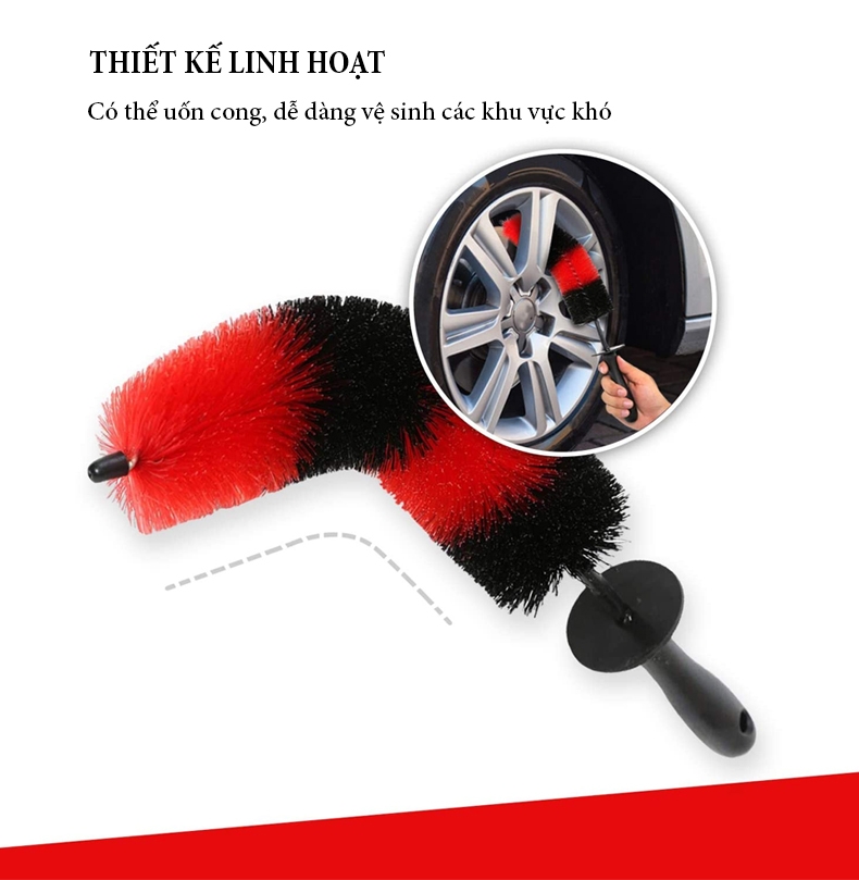 Bàn chải làm sạch vành xe có thể chạm tới các khe hẹp giữa nan vành, khoảng trống nhỏ xung quanh đĩa phanh, kẹp phanh và các khu vực khó tiếp cận khác. Lông bàn chải được làm từ nylon chất lượng cao, chống mài mòn, không thấm nước, dẻo dai, mềm mại và cực kỳ bền. Phần đầu bàn chải được bọc cao su để tránh làm trầy xước bề mặt, trong khi phần cuối tay cầm có một lớp bảo vệ cao su để bảo vệ tay bạn khi sử dụng.
