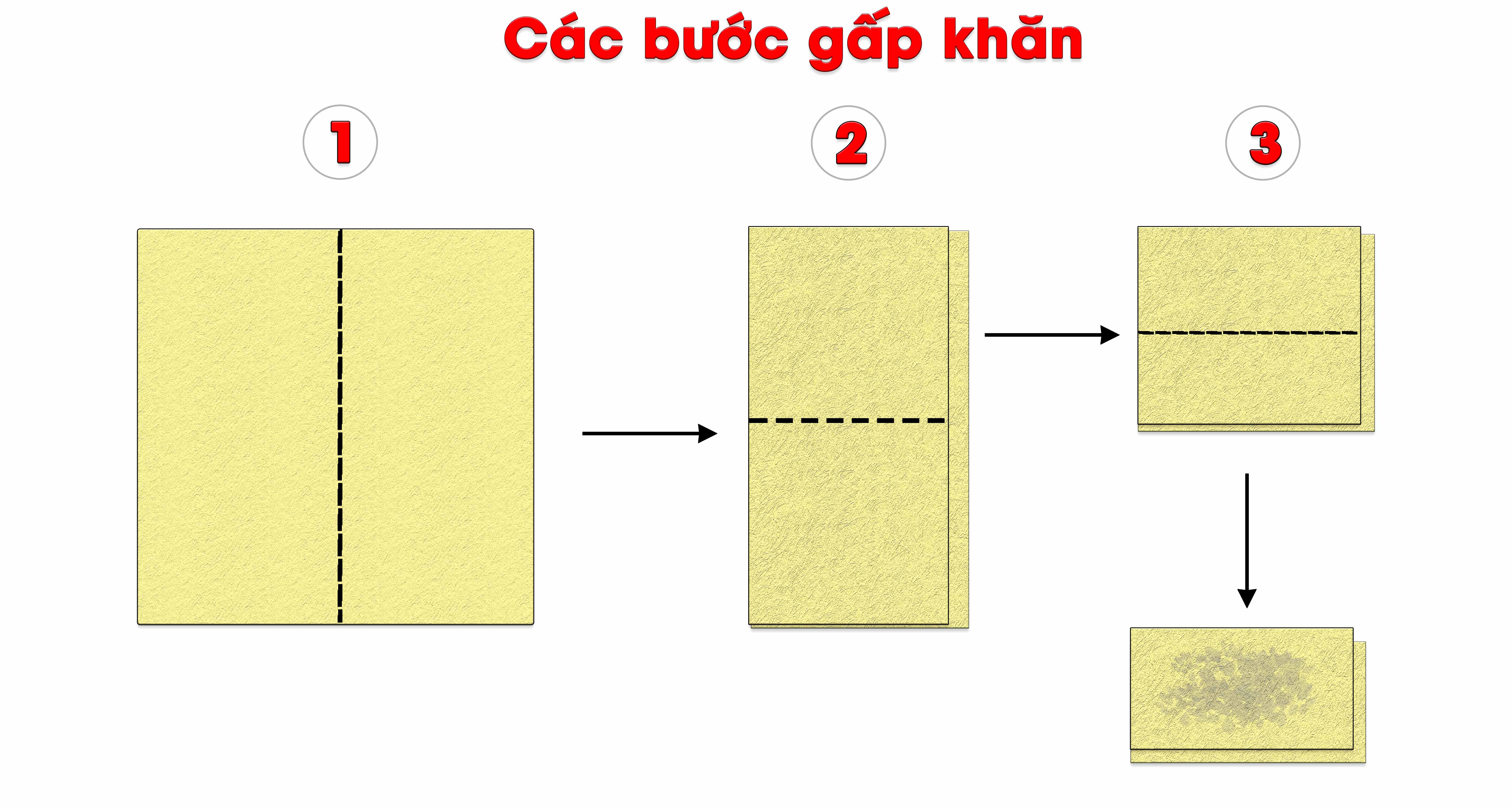 Bước 2: Gấp khăn phủ như hình, mặt hở thì cầm trong lòng bàn tay