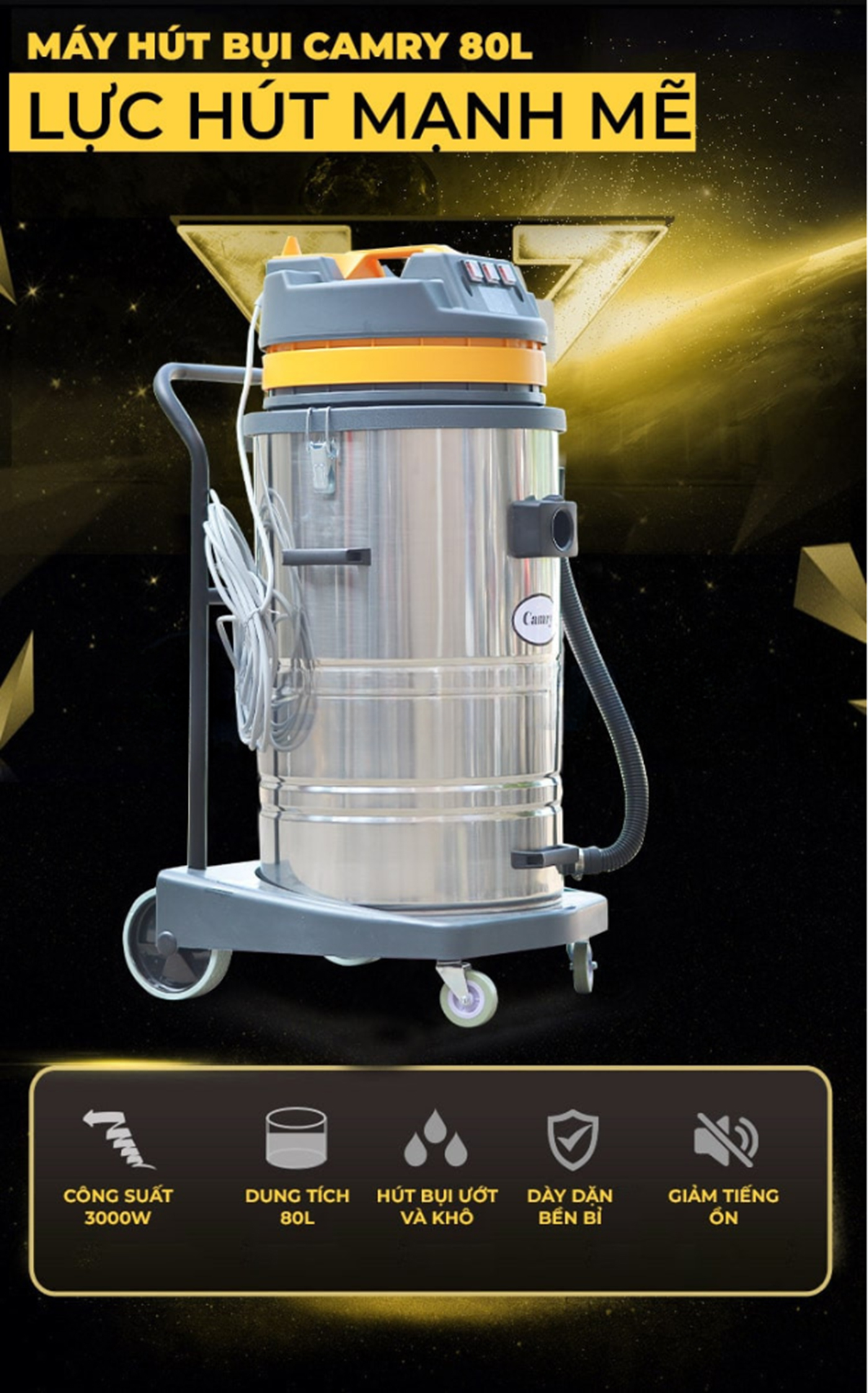 Máy Hút Bụi Camry 80L 3000W | 3 Motor - Hút Khô & Hút Nước - BF 585-3