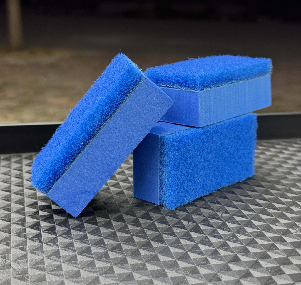 Miếng mút bọt biển phủ nỉ chuyên dụng, khi kết hợp với đúng dung dịch giúp tẩy nhanh các vết ố nhẹ như ố nước, ố mưa trên bề mặt kính
