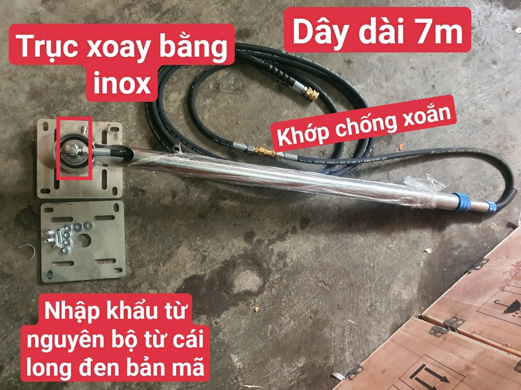 • Tay quay rửa xe 360 độ đơn dây 7m là phiên bản nâng cấp từ mẫu dây ngắn 2m, giúp mở rộng phạm vi hoạt động trong các gara có từ 1–2 khoang rửa, đặc biệt phù hợp với tiệm có bề ngang rộng đến 5–6m.